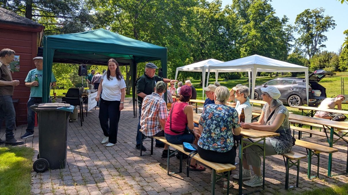 Nach der Arbeit gibt es zur Stärkung eine gemeinsame Pause mit Kaffee und Kuchen. Daran schließt sich dann für Interessierte eine zweistündige Exkursion über die einzigartigen Bergwiesen an. Der Tag soll danach mit Getränken und einem kleinen Grillimbiss im Kurpark gesellig ausklingen. Wer zu Fuß nicht so gut unterwegs ist, kann die Zeit während der Exkursion auch im Kurpark verbringen.