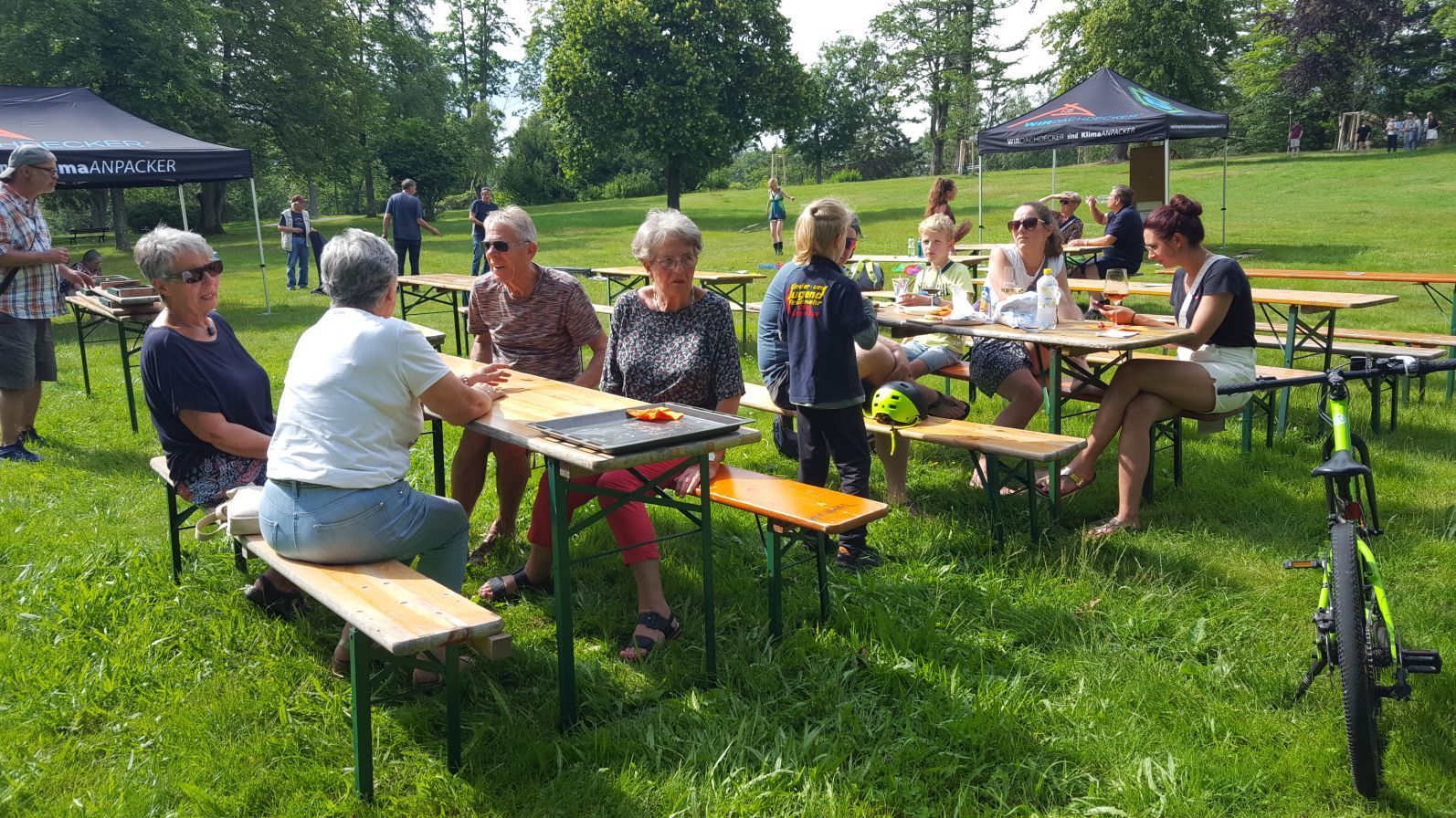 Bei Nieselregen mit trockenen Phasen haben dieses Jahr in den Sommerferien ca. 40 Kinder mit ihren Eltern zusammen mit den fleißigen Helfern des Bergstadtvereins einen gelungenen Nachmittag im Kurpark verbringen können.
