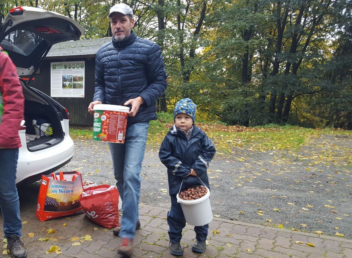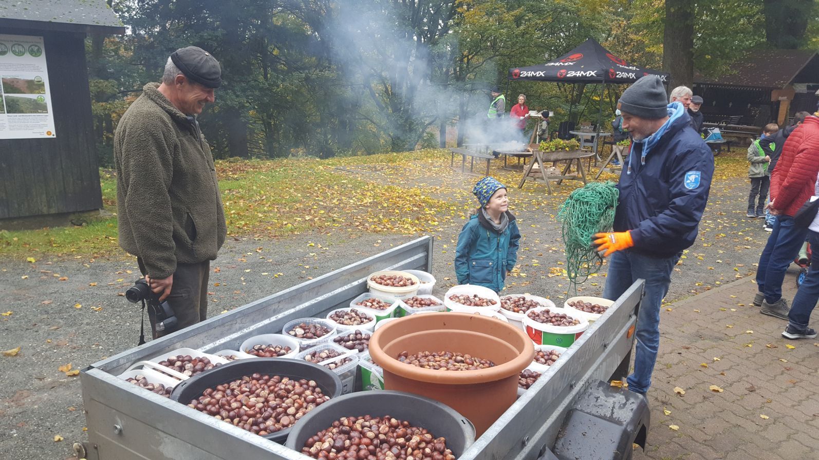 Jeder kann im Vorfeld viele Kastanien, Eicheln oder Bucheckern sammeln und dann abgeben.