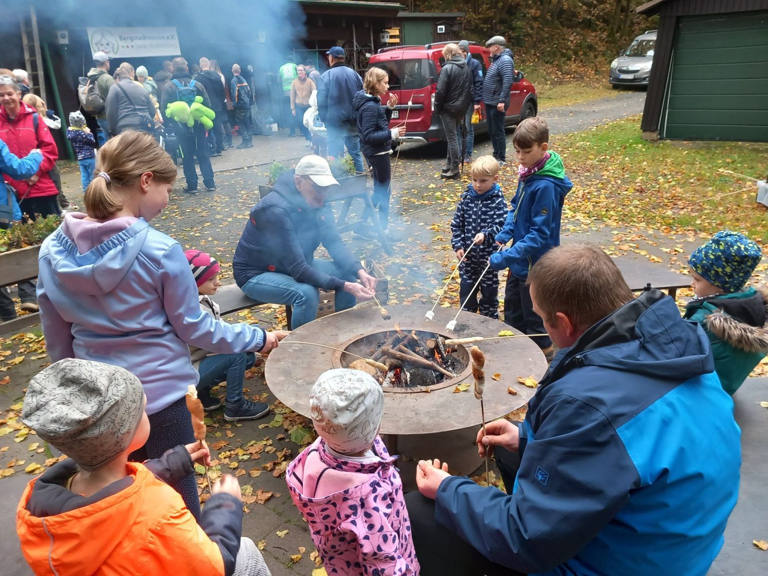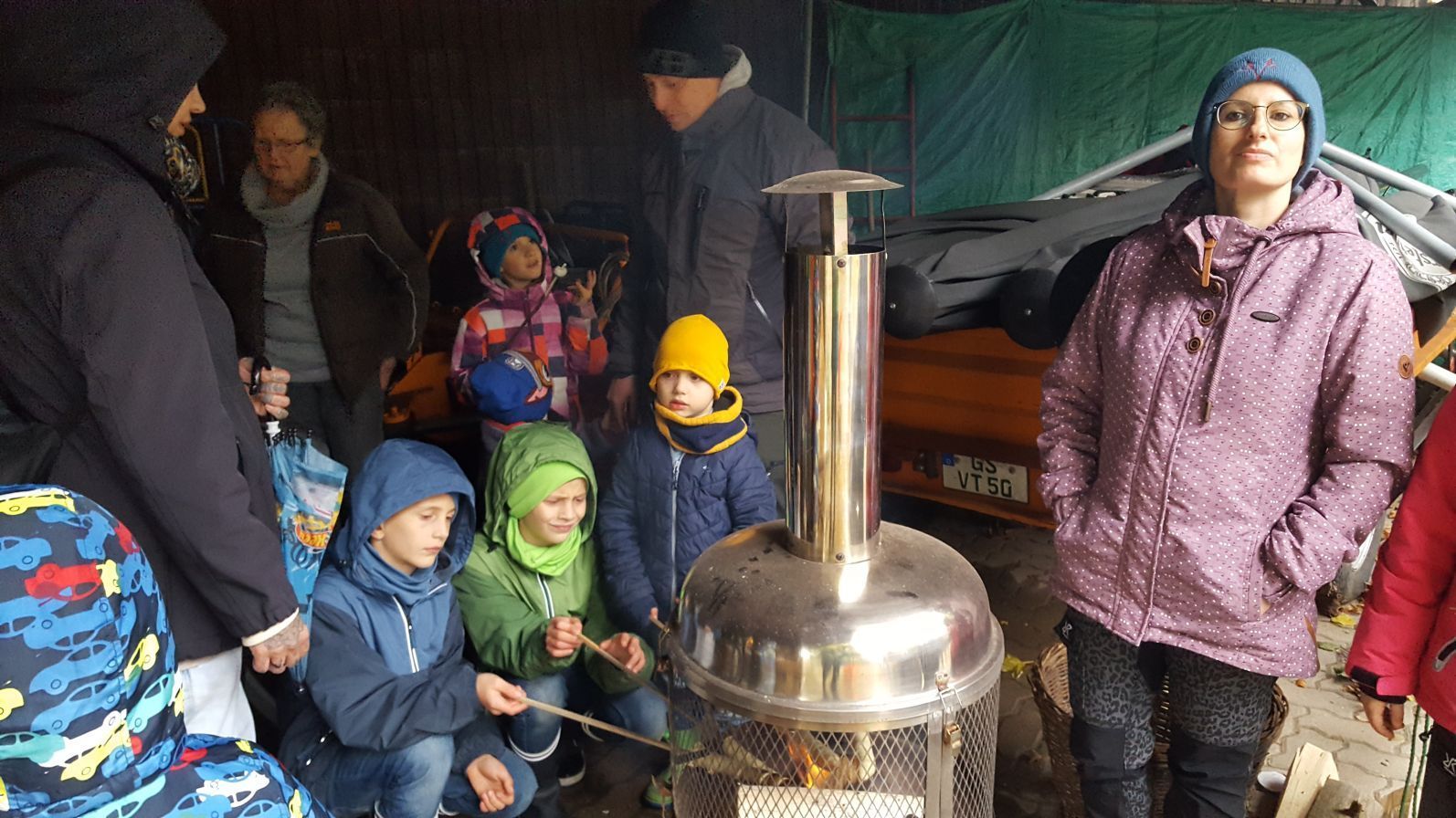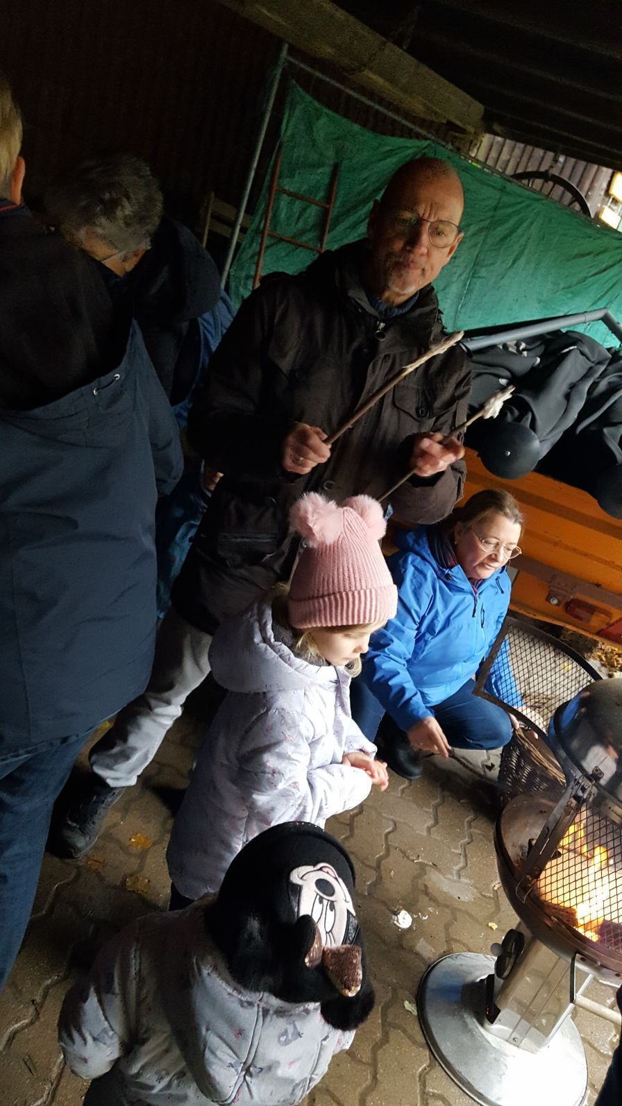 Das Lagerfeuer in der Schale der Sitzgruppe war auch schon an, so dass bald auch die Kinder mit dem Stockbrot und dem Mäusespeck beginnen konnten.