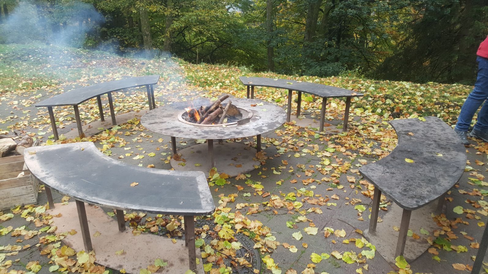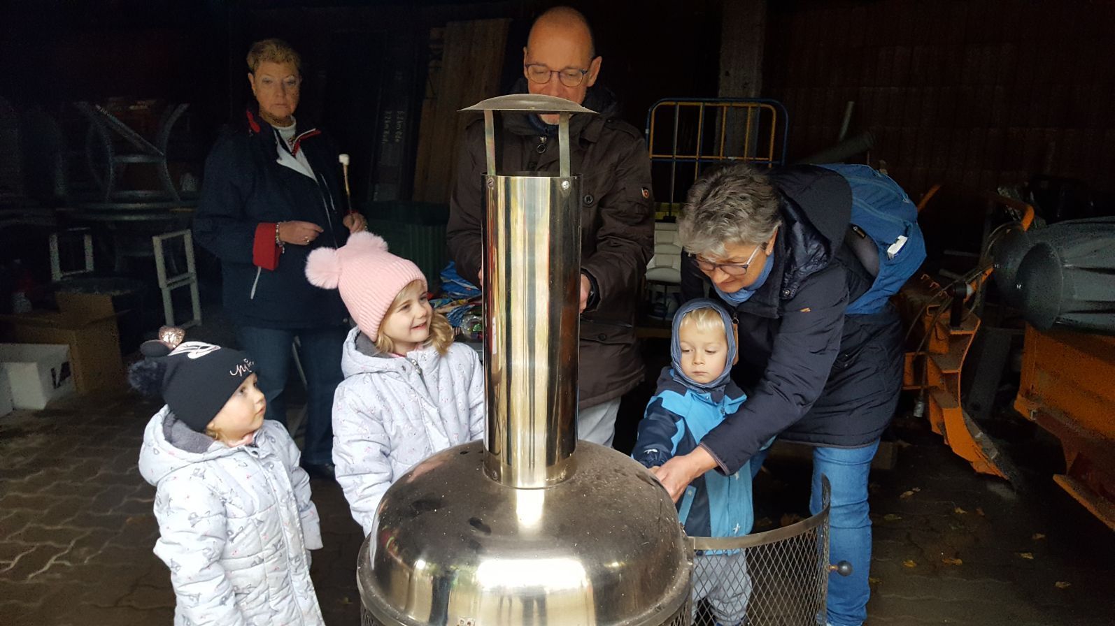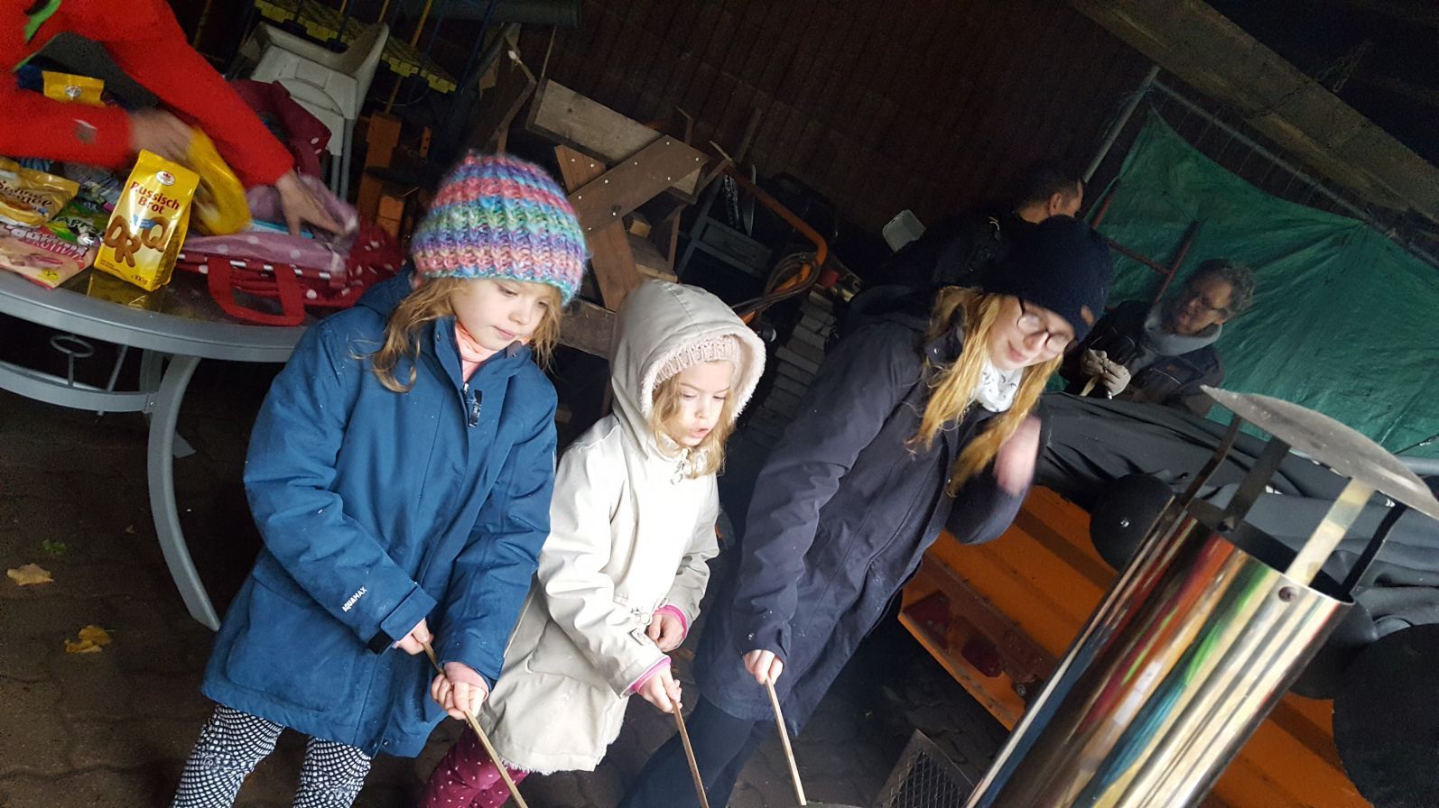 Das Lagerfeuer in der Schale der Sitzgruppe war auch schon an, so dass bald auch die Kinder mit dem Stockbrot und dem Mäusespeck beginnen konnten.