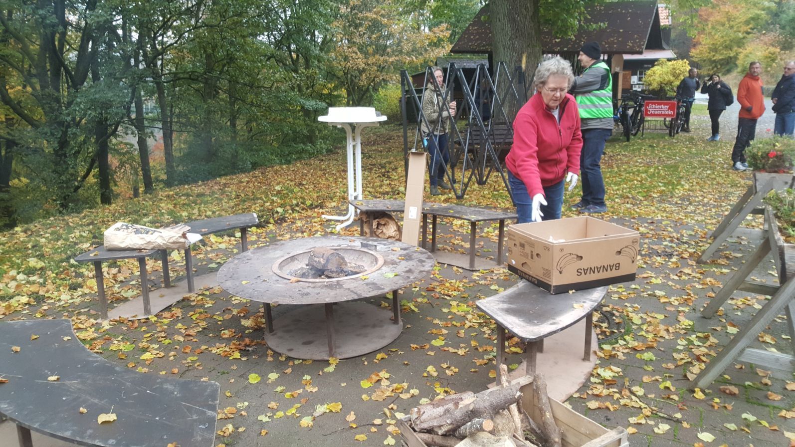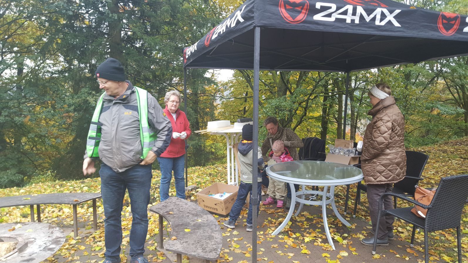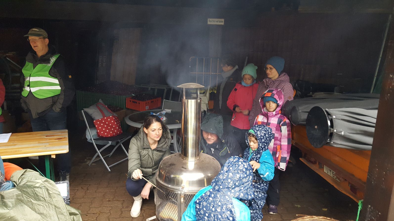 Beim Aufbau kam noch eine letzte Wolke durch und goss einige Tropfen auf die Fläche vor dem Rehberger Grabenhaus, doch dann war auch damit Schluss, so dass wir in Ruhe mit den Vorbereitungen weiter machen konnten.
