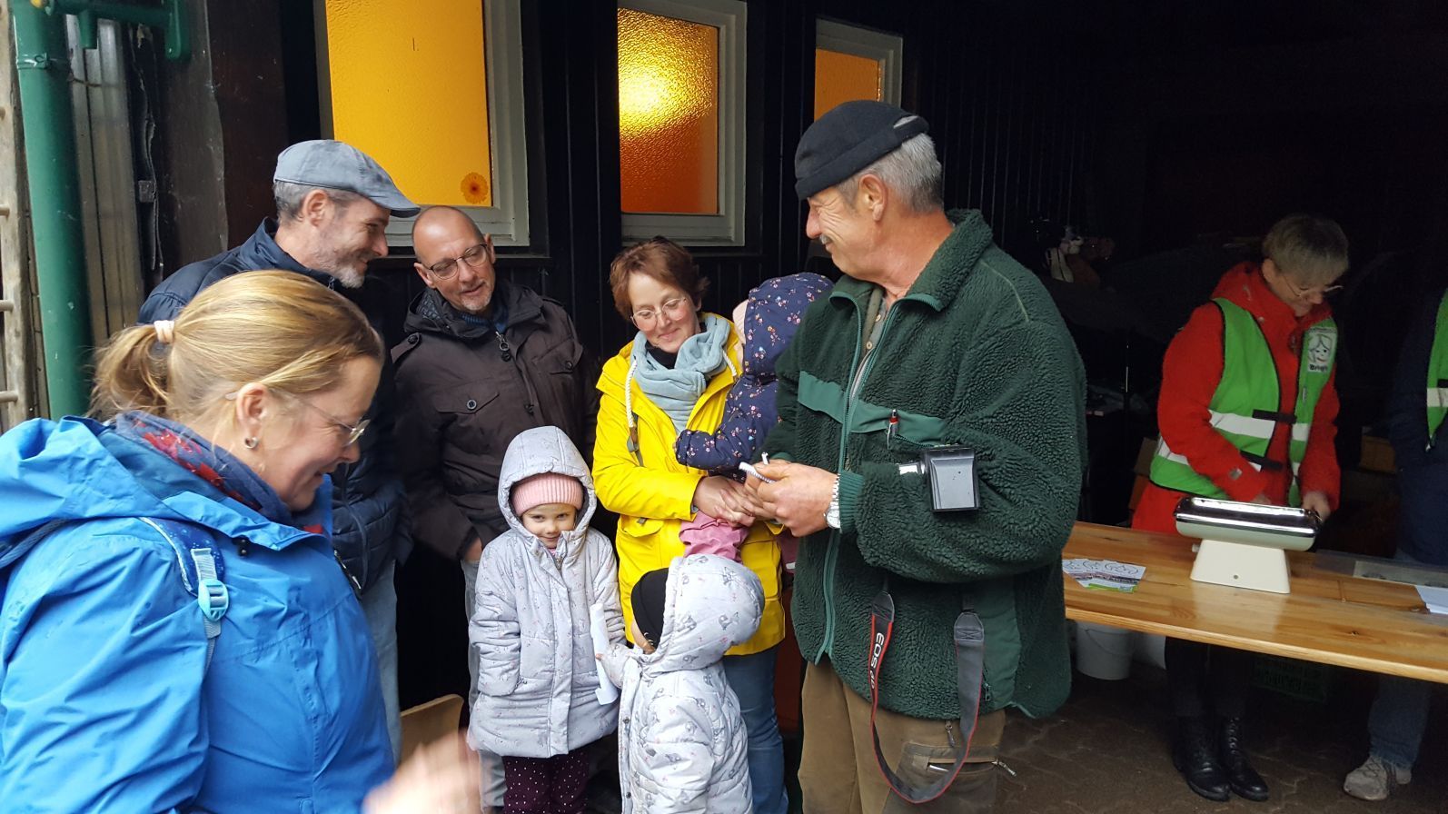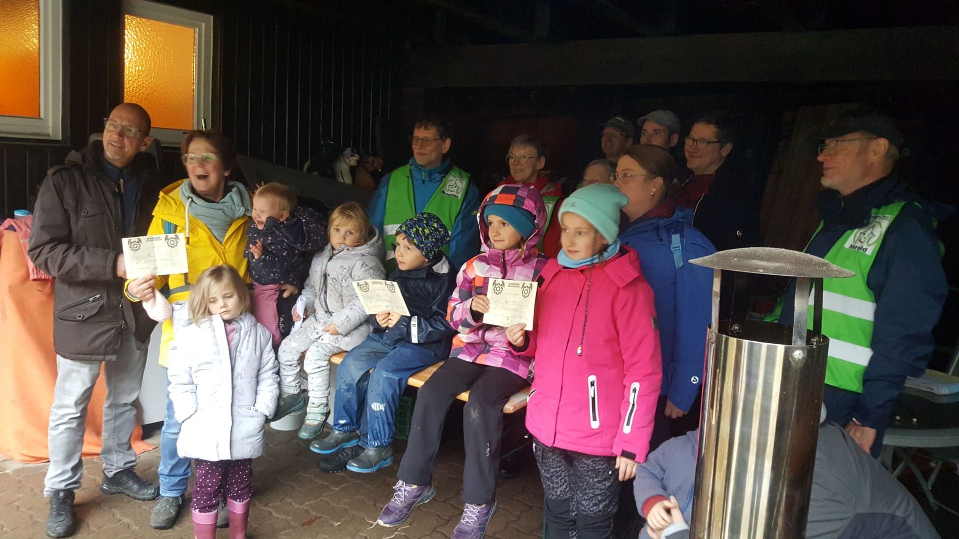 Die angesetzte Zeit von 14 bis 15 Uhr für das Wiegen wurde leicht überzogen, so dass erst gegen 15.30 Uhr mit der Siegerehrung begonnen werden konnte. Es waren aber nur Gewinner anwesend, da jedes Kind, egal mit wie viel Kastanien es angekommen war, natürlich sich aus der reichhaltigen Auswahl an Tausch-Süßigkeiten etwas aussuchen konnte. Die 51 Teilnehmerfamilien haben dieses Jahr das Ergebnis vom Vorjahr mit 1.756 Kilogramm Kastanien mehr als getoppt.