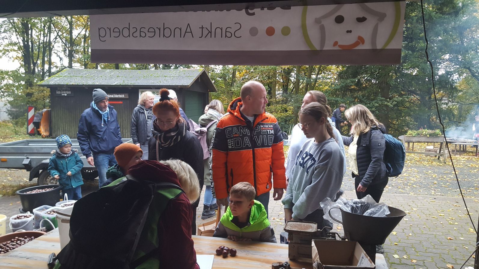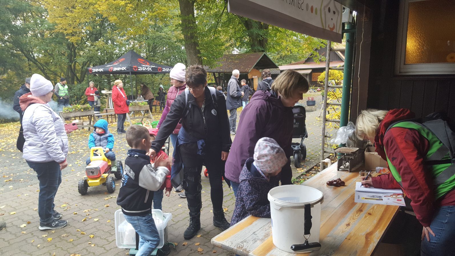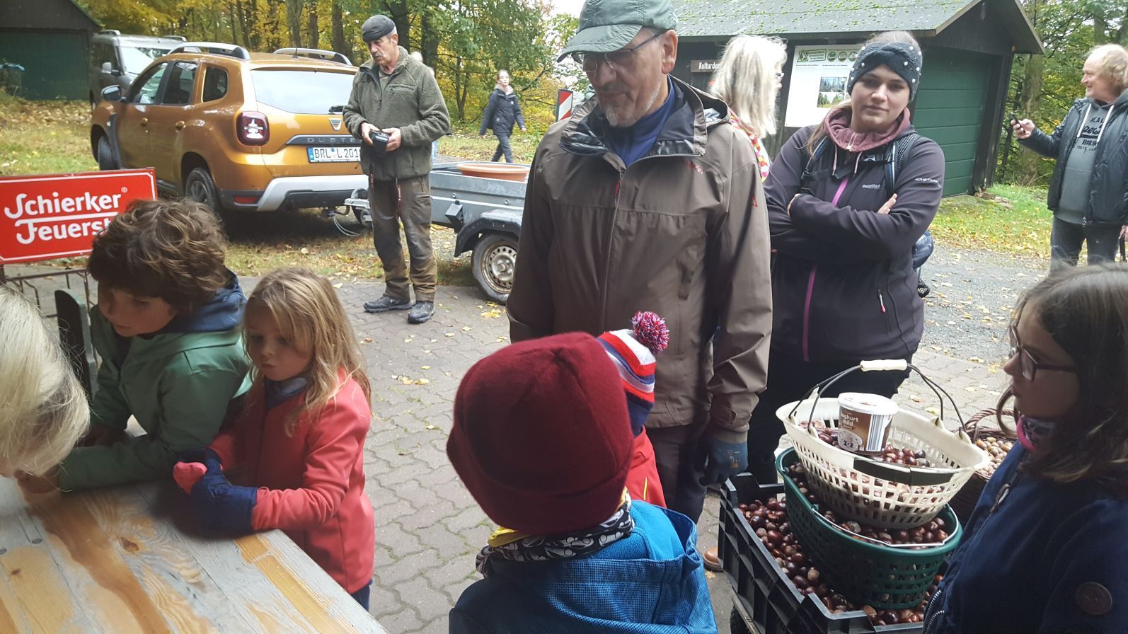 33 Familien mit 66 Kindern haben 1.026 kg Kastanien gesammelt und am Rehberger Grabenhaus gegen Süßigkeiten eingetauscht, sich mit Stockbrot, Marshmallows, Buttons zum selber malen und Malbüchern vergnügt. Die Kastanien haben teilweise einen weiten Weg genommen. Sie kamen aus Cuxhaven, Hannover und dem ganzen Harzraum.