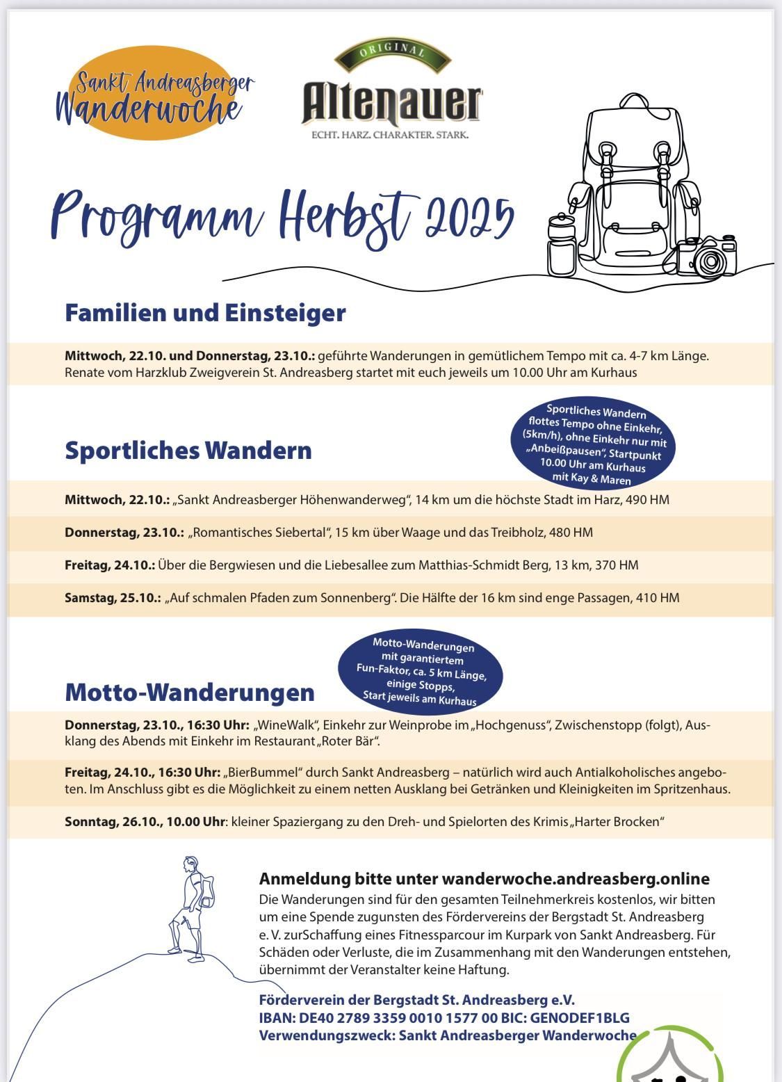 Anmeldungen sind über die Webseite wanderwoche.andreasberg.online möglich.